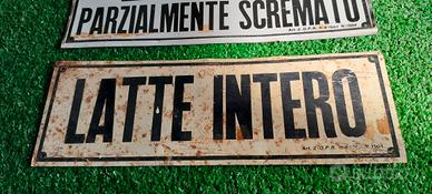 coppia tabella insegna in latta metallo lamierino fine vintage da collezione latte parzialmente scremato e Latte intero