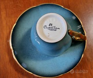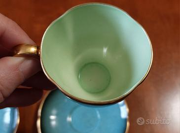 Coppia bellissime tazzine Carlton Ware 1930, in porcellana inglese. Perfette sia nella porcellana, sia nei colori e finiture in oro. Solo l'interno di una tazzina ha delle ombreggiatura, come si vede dall'ultima foto.