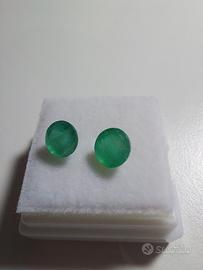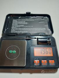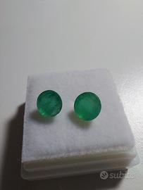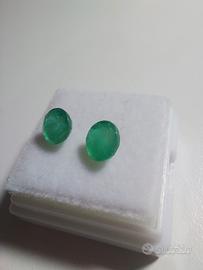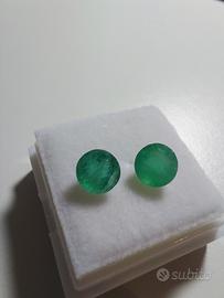 Vendo questa coppia di smeraldi naturali taglio diamante. Perfette per una coppia di orecchini. Dimensione: 6 mm Peso totale: 1.960 carati Provenienza: Zambia Trattamento: olio di gelsomino