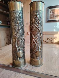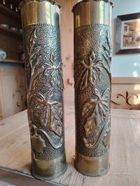 Coppia Bossoli In Ottone Sbalzati E Cesellati.