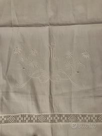 Copri lettino da bimbo vintage in cotone finemente ricamato e decorato con pizzi tutti fatti a mano all’uncinetto cm 85 x 97 Come nuovo