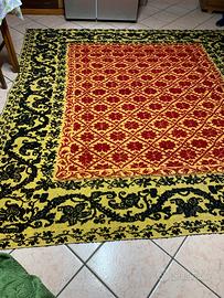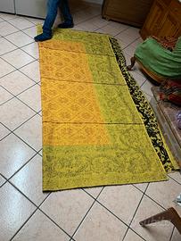 Grande copriletto-tappeto Sardo dei primi 900 realizzato a telaio a mano a Samugheo composto da 4 strisce, misura 2,60x2,60 mt, mettodo tessitura a pibiones, lana di pecora lavorata e colorata manualmente, in perfette condizioni e usato pochissimo appartenuto ad una famiglia nobile e molto religiosa. Ideale anche x traccas Sant’Efisio, sfilate in costume Sardo o da appendere nelle facciate delle abitazioni in occasione di cerimonie e processioni religiose che paesane, pezzo da museo. Per realizzare questo tappeto a pibiones e con vera lana di pecora ci sono volute tantissime giornate di lavoro e maestria e farlo realizzare adesso costa circa 400 500 euro al metro. Di lecita provenienza e verrà compilata una facoltativa cessione tra privati. Diffidate da chi si vanta di procurare a basso prezzo tappeti simili perché…… Forse é stato realizzato a Samugheo o a Orroli No broccato, terziopelo, seta, scialle, corsetto, arazzo, costume Sardo etc
