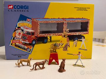 Corgi scala 1:50 - articolo 11201 - anno 1997 - Serie Circo Chipperfield - ERF KV artic with cages, lokns, tigers, pedestal & tamer - edizione limitata n. 07462 di 11.500 - figurine in metallo dipinte a mano