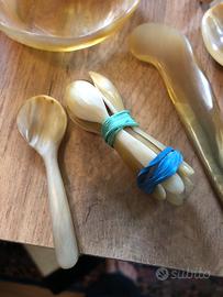 Oggetti in materiale corna di bufalo del Madagascar 12 mini cucchiaini tre cucchiaini un mestolo due bricchette tre porta i caramelle un mestolo totale 13 oggetti +12 mini cucchiaini nuovi