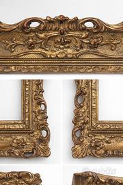 Stato di conservazione: ottimo, con patina originale e segni del tempo coerenti con l’età Elegante cornice rettangolare in legno intagliato e dorato, di manifattura artigianale italiana.
