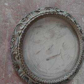 Cornice antica tonda diametro 50 cm , intagliata a mano , con vetro originale ,ideale per creare specchiera, ritratti antichi,o restauro tipo shabby,da ripulire vendo ad euro 40 , prezzo leggermente trattabile , ritiro a mano zona vescovato