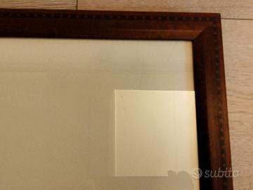 Cornice in legno artigianale liscia, smussata con lavorazione su tono molto raffinata , praticamente nuova, in perfette condizioni. Provvista di vetro, rifinita sul retro, cartone passpartu e gancio per appendere .Dimensioni in foto