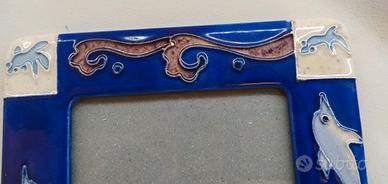 Bella cornice porta foto in ceramica decorata a mano. Rappresenta dei delfini. Condizioni perfette. Misure sull'ultima foto.