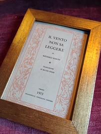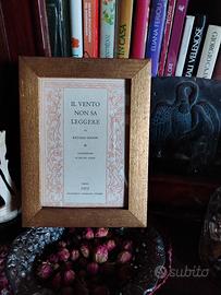 Cornice originale anni ’70 in legno, rifinita con doratura a bolo e dettagli in foglia oro, dal fascino caldo e autentico. Per foto in bianco e nero, seppia, cartoline d'epoca, poesie. Ha una linea semplice, elegante, di quelle che non passano mai di moda. Il pannello interno è stato creato con una pagina autentica del libro “Il vento non sa leggere” di Richard Mason (edizione anni ’50), trasformata in inserto decorativo dal gusto poetico e senza tempo. Potete utilizzarla per il retro, è versatile e piena di anima bella come sfondo o passepartout per fotografie, capovolgibile e adattabile anche come chiusura della cornice. Perfetta da appoggio tra libri o su una mensola, per chi ama atmosfere romantiche e vissute. Eccellenti condizioni vintage, con lievissimi segni del tempo praticamente impercettibili Epoca: anni ’70 (cornice) anni ’50 (pagina interna) Legno con doratura a bolo foglia oro Le cornici belle di un tempo fatte per durare Spedizione accurata e veloce NO Poste italiane 🚫