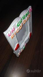 Cornice porta foto da tavolo "Un giorno da ricordare" a forma di diario aperto, anni'90, made in Italy, design Angi, misure cm 15x cm 16, in ottime condizioni come da foto.