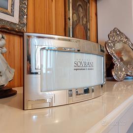 Bellissima ed elegante Cornice Portafoto SOVRANI degli anni 2000 in argento 925. Linea curva con elementi geometrici. Stile moderno.