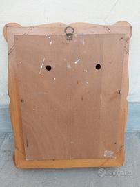 Quadro votivo anni 60/70 molto bello e retroilluminato della Madonna con Bambino, 2 angoli sono parecchio danneggiati, uno è scheggiato e l'atro ha qualche segno di usura, la cornice nella parte anteriore è impallacciata, il retro è in legno e presenta 2 fori per l'applicazione di 2 lampadine, l'immagine della madonna è stata stampata su un vetro ricurvo, misure 28x35. Non fornisco l'impianto e le lampadine per la retroilluminazione, per fare le foto ho usato una fonte di luce diversa. Prezzo 10€ ritiro a Gruaro o martedì 25 Novembre a Pordenone-Sacile
