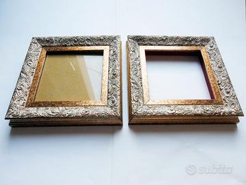 Vendo 2 cornici gemelle, quadrate, di legno in stile rococò.