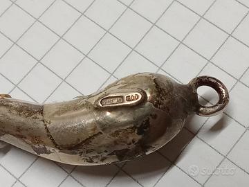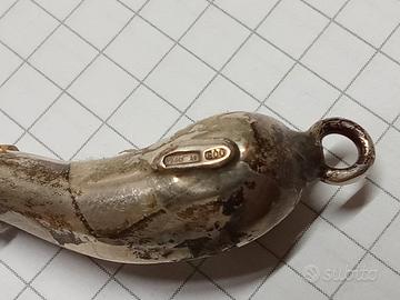 Corno portafortuna argento simbolo di fattura artigianale di De Laurentiis Napoli con punzone.