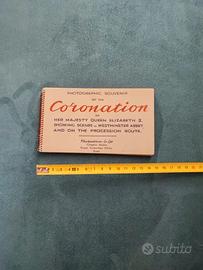 Descrizione: Piccolo album a spirale cm 15x9, con fotografie dell'incoronazione della Regina Elisabeth II. Copertina in cartoncino grigio con scritte blu e rosse sul davanti. Si compone di 12 fotografie colore seppia, ciascuna con didascalia.