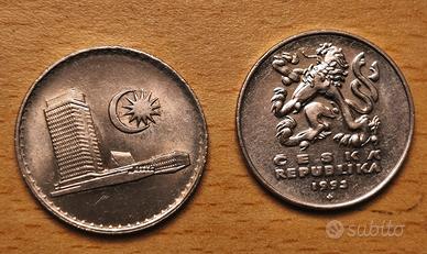 1 moneta da 5 corone Ceche raffigurante ponte Carlo a Praga,anno 1993 / 1 moneta da 20 sen malese raffigurante parlamento malese,anno 1981. ottimo stato di conservazione.