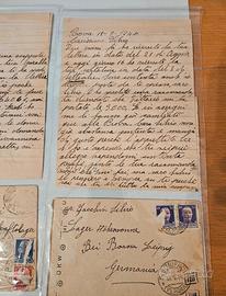 3 lettere originali con relative buste, parte di una corrispondenza autentica tra un internato italiano detenuto nel lager di Borna bei Leipzig (Germania) e i suoi familiari in Italia, nel 1944 durante la Seconda Guerra Mondiale.
