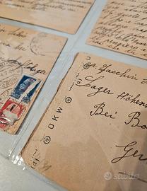 Le lettere presentano timbri, scritte e annotazioni originali dell’epoca, tra cui:
