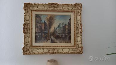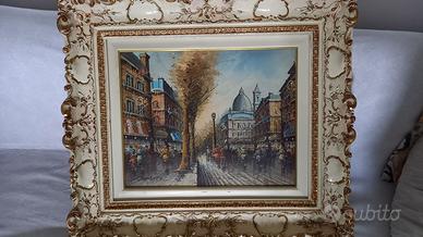 Quadro soggetto " Parigi " dell'autore Cortez, olio su tela, il quadro compreso di cornice in legno colore avorio rifinito con rilievi dorati misura 70x80cm. e 9cm. di spessore , la tela 40x50cm. . La valutazione consigliata in base ai lavori presentati nelle varie case d'asta è molto superiore. Vendo per urgente realizzo. Preferibile consegna in zona Verona e provincia. Costo imballo e spedizione è a carico dell'acquirente.