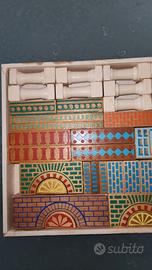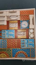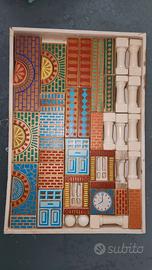 set completo di nr 46 pezzi di costruzioni legno vintage ottima serigrafia