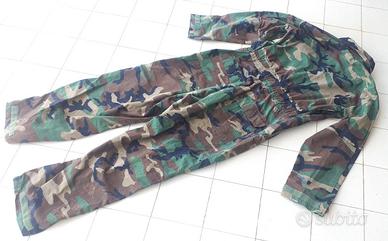Bellissima tuta monopezzo Coverall Mechanics Cold Weather, originale U.S. Army in mimetismo woodland del 1996. Forse mai usata, condizioni molto buone con scarsi segni di immagazzinaggio, tutta originale. Sono presenti sul retro alcune macchie blu-azzurre forse lavabili. La taglia riportata è Large (senza nessun impegno su taglie, vestibilità ecc. la cedo esclusivamente come oggetto da collezione e non invio misure sartoriali, grazie). Zip perfettamente funzionante, l'etichetta interna con le specifiche originali militari è presente e perfettamente leggibile. Ottimo pezzo.