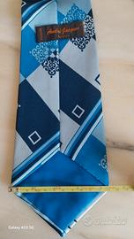 Favolosa Cravatta, dei anni 70's disegno a Rombi Geometriche. Nei colori azzurro , grigio e blu scuro