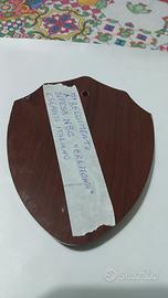Tutti in legno con placca metallica smaltata.