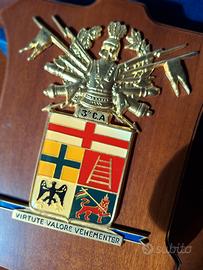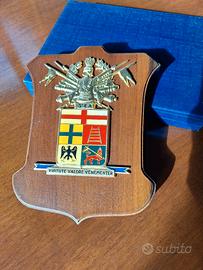 Lo stemma rappresenta il III Corpo d'armata, una grande unità militare dell'Esercito Italiano attiva dal 1957 al 1997 con quartier generale a Milano.Le misure sono 16 x 20 cm circa.