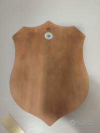 Materiale: fregio in metallo smaltato, base in legno;