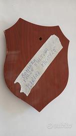 Tutti in legno con placca metallica smaltata.