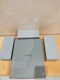 6 bicchieri Cristal Lalique. I flute da champagne Angel di Lalique sono bicchieri di cristallo di alta qualità con un motivo a forma di angelo sullo stelo e sulla coppa, ispirato alla scultura "Angelo sorridente" della Cattedrale di Reims. Il calice da champagne Smiling Angel era un omaggio di Marc Lalique a suo padre e alla regione natale di René Lalique. Sono considerati un oggetto da collezione vintage in stile Art Déco e recano l'incisione "Lalique France". Perfetti, 1 pezzo senza confezione, 3 pezzi in confezione singola e 2 pezzi in confezione doppia.