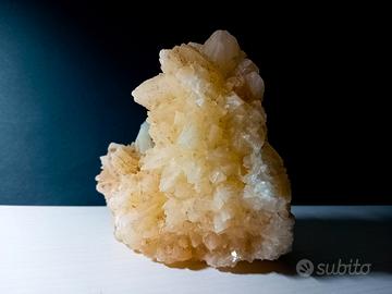 Cristallo di quarzo, presenta la tipica struttura a cristalli di varie sfumature di bianco.