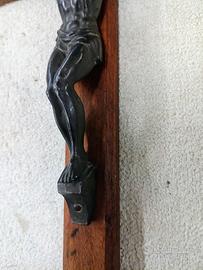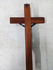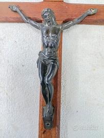 Cristo Crocifisso in metallo su croce in legno vintage Misura cm 16x30