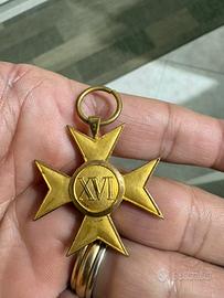 • Significato: Questa medaglia veniva conferita ai militari (in questo caso specifico, probabilmente sottufficiali o truppa, data la tipologia della croce) che avevano prestato 16 anni di servizio attivo nelle forze armate con onore.