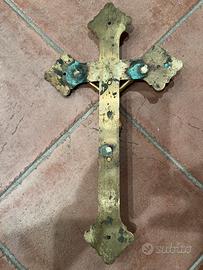 Croce con Cristo in ottone pieno realizzata da artigiano toscano.