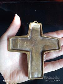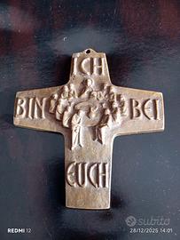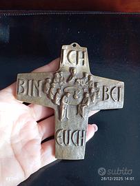croce religiosa da parete vintage anni'60 bronzo massiccio fuso made in Germany raffigura rilievo dell'ultima cena iscrizione in tedesco