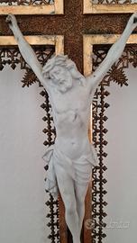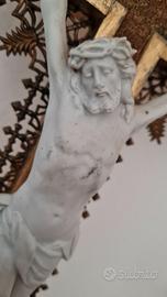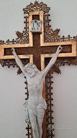 Vendo Crocefisso antico in legno e metallo, cristo è di ceramica. Altezza 52 cm Data la delicatezza dell'oggetto non spedisco.