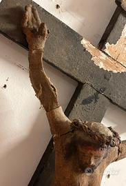 statua in cartapesta Cristo Crocefisso Croce legno - Fine ‘ 700?? Da Restaurare