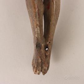 Crocefisso in legno intagliato, laccato e dipinto. Braccia mancanti.