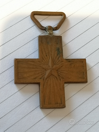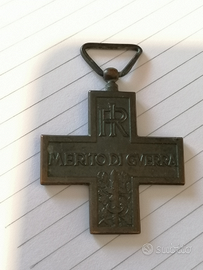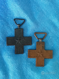 Croci di bronzo al merito di guerra. Medaglia scura:Modello RI - Repubblica Italiana Medaglia chiara: Modello Vittorio Emanuele III