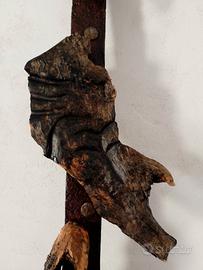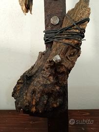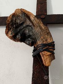 crocifisso originale in ferro battuto e legno di ulivo altezza 104 cm. x 50 cm.