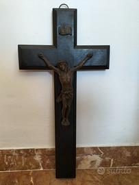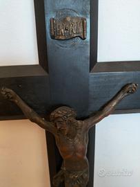 Crocifisso in legno cm 47 x 24 con Cristo in BRONZO h cm 20 x cm 13 apertura mani e scritta INRI in BRONZO cm 3,2 x 2 peso kg. 1.2, in perfette condizioni X collezionisti e/o amatori.