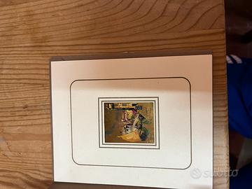 Elegante cromolitografia d’arte realizzata a mano con applicazione di foglia oro 23 kt, firmata dall’artista Maria Angellilo. L’opera è contenuta in cartoncino rigido con certificato di garanzia ufficiale Prearo Editore Milano, che ne attesta l’autenticità e la tiratura limitata.