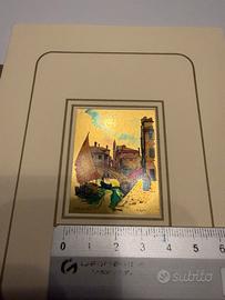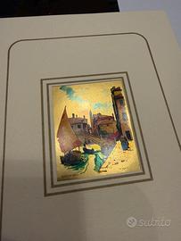 Cromolitografia su foglia d'oro 23 kt dell'artista Maria Angelillo, che raffigura uno scorcio veneziano. Il fondo è realizzato con foglia d'oro vero, che conferisce luminosità e valore all'opera. Con certificato di garanzia