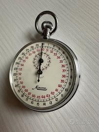 Autentico stopwatch Minerva con scala decimale (numeri da 14 a 60 in nero e rosso).