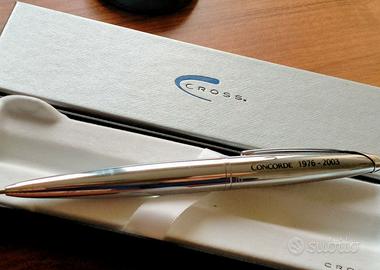 Penna a sfera meccanica Cromata riporta incisi il logo della compagnia aerea e l'anno del primo (21 Gennaio 1976) e ultimo volo (24 Ottobre 2003) del Concorde.