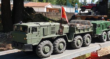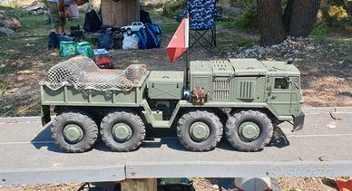 Vendo Cross RC BC8 Mammoth in versione flagship (all metal) con cassone originale Cross RC (rimovibile). Viene comunque fornita la ralla in dotazione per la configurazione originale. Monta impianto luci e suono Cross RC, impianto fumo dagli scarichi, Esc hobbywing 1080, due servi Doyono da 80kg l'uno per lo sterzo, un servo da 25kg per il cambio, verricello originale Cross RC, Interruttore elettronico per impianto fumo, Bec Castle Creations da 20A. La cabina è stata verniciata con bombolette da softair della Fosco per ottenere un fondo satinato e resistente. Viene fornito senza radio e ricevente.