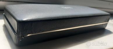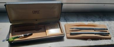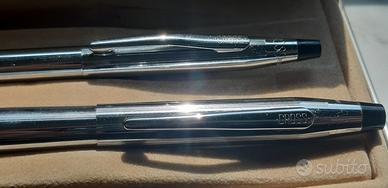 Vendo set Cross comprensivo di penna stilografica , con pennino misura M , più portamine. Usato ma in ottime condizioni come da foto. Finitura in acciaio silver , molto elegante e raffinata. Da segnalare usura laterale del cofanetto ,che non pregiudica l'utilizzo delle due penne. Presente converter per cartucce d'inchiostro. Controscatola non presente.