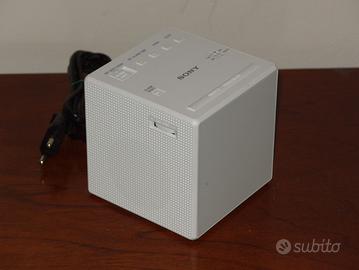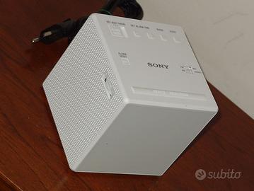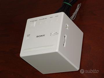 Cubo Radio-sveglia Sony ICF-C1 bianca , vintage in eccellenti condizioni praticamente come nuova e perfettamente funzionante ( in qualche foto si puo' vedere l' orario proiettato su una delle facce ).