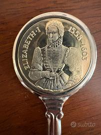 Set composto da tre cucchiaini vintage The Tower Mint da collezione che raffigurano la regina Elisabetta I, la London Tower e il chief warden della London Tower. Come si può evincere dalle foto sono nuovi, mai usati e ancora nella loro confezione originale